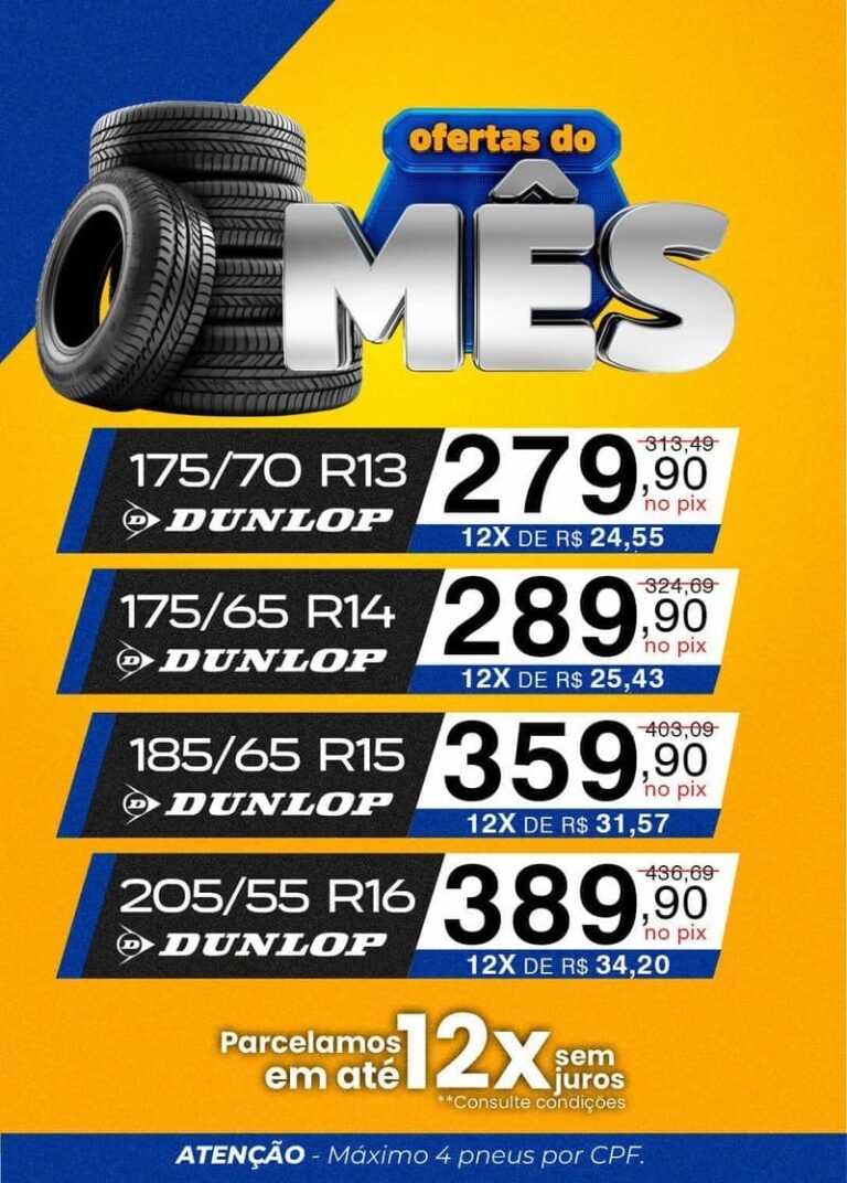 Promoção não acumulativa e atrelada a disponibilidade de estoque. Pneus Promocionais, montados em loja, vendidos à vista e à base de troca, em respeito a resolução nº 416, de 30 de setembro de 2009. Máximo 4 pneus por CPF. Todas as imagens são meramente ilustrativas. Não executamos serviços em carro com à originalidade adulterada. Por se tratar de uma promoção relâmpago, a Palermo Pneus reserva no direito de interromper a promoção sem prévio aviso. **Parcelamos em até 12x, consulte condições.